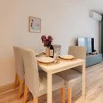 Lägenheten erbjuder gästerna balkong, sitthörna och soldäck, samt moderna bekvämligheter som luftkonditionering. För ökad komfort erbjuds en separat toalett på boendet. Hårtorkar, badlakan och handdukar finns också tillgängliga.